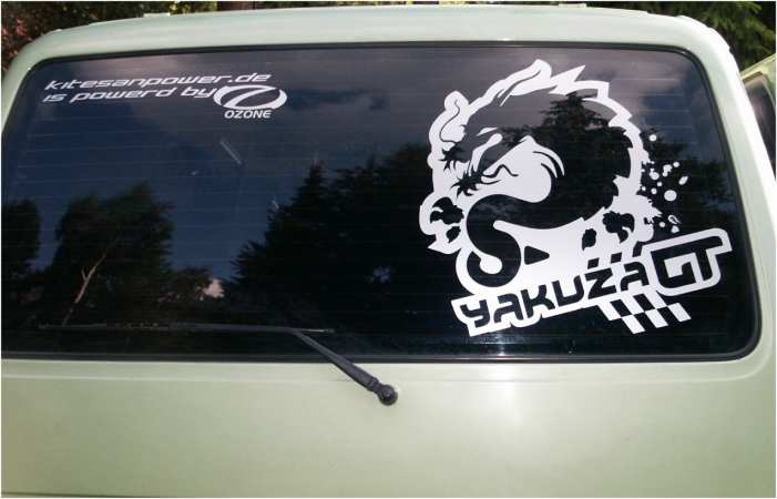 Anbei Beispiele für Aufkleber an bisherigen Fahrzeugen.