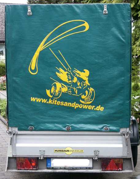 Auf der anderen Seite des Hängers habe ich als Erkennungszeichen diesen Totenkopf angebracht. Abmaß liegt bei 220cm x 100cm.