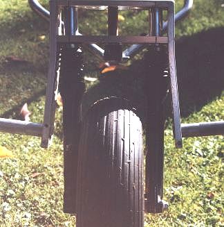 Auf diesen Fotos ist nun die neuere Vorderachse zu sehen. Wenn man die Vorderachse so baut, spart man sich die mühevolle Arbeit mit dem Biegen des Standrohres. Die Fahreigenschaften ändern sich durch die andere Form der Gabel nicht.