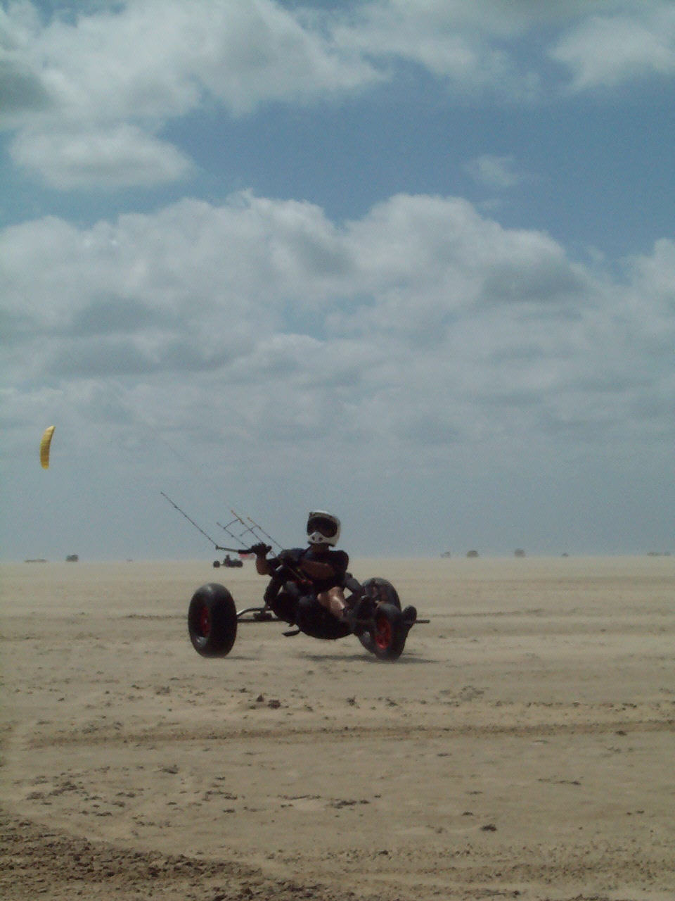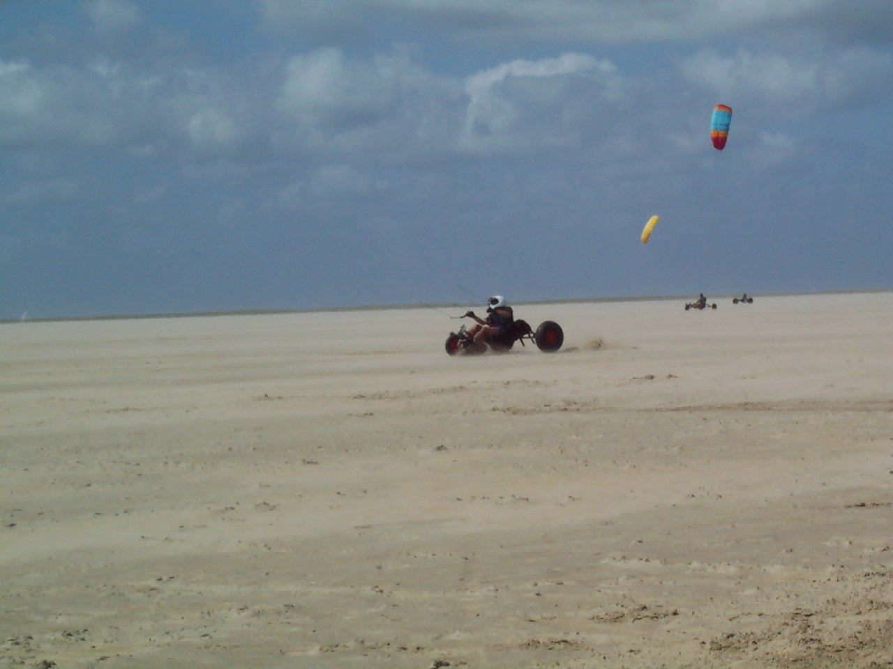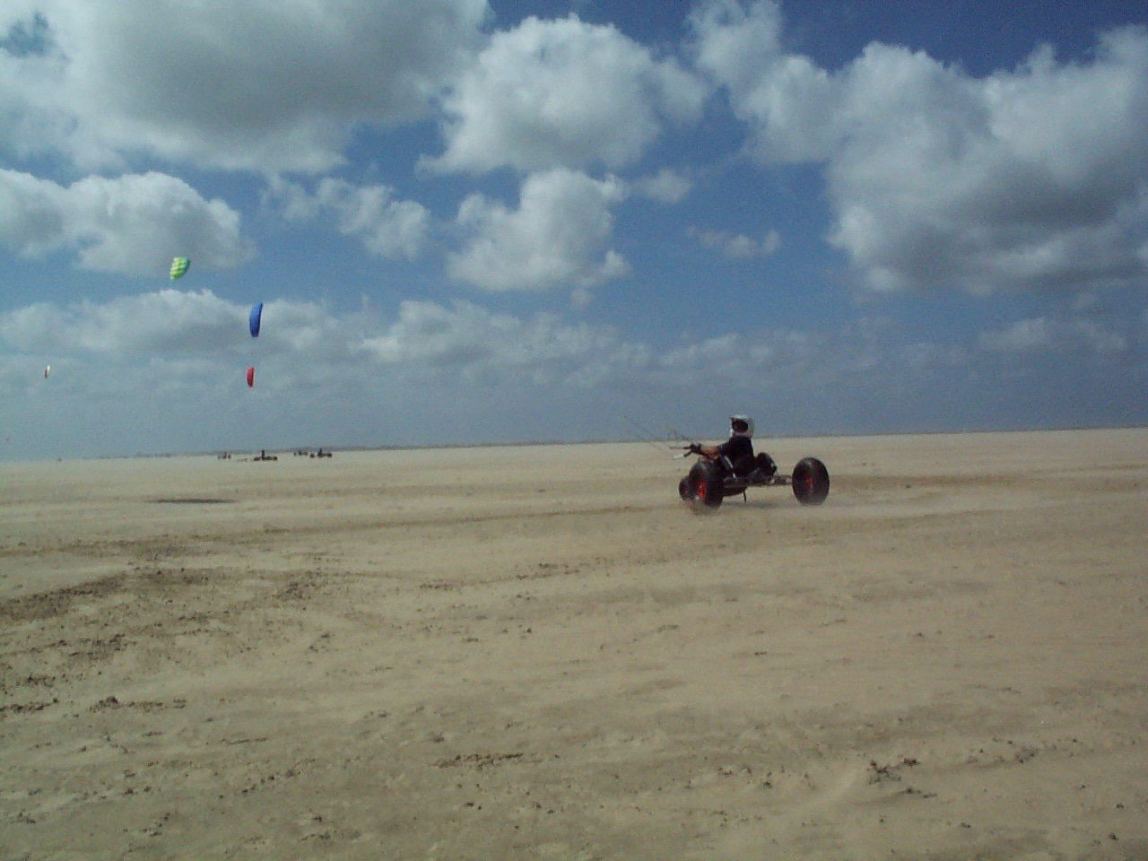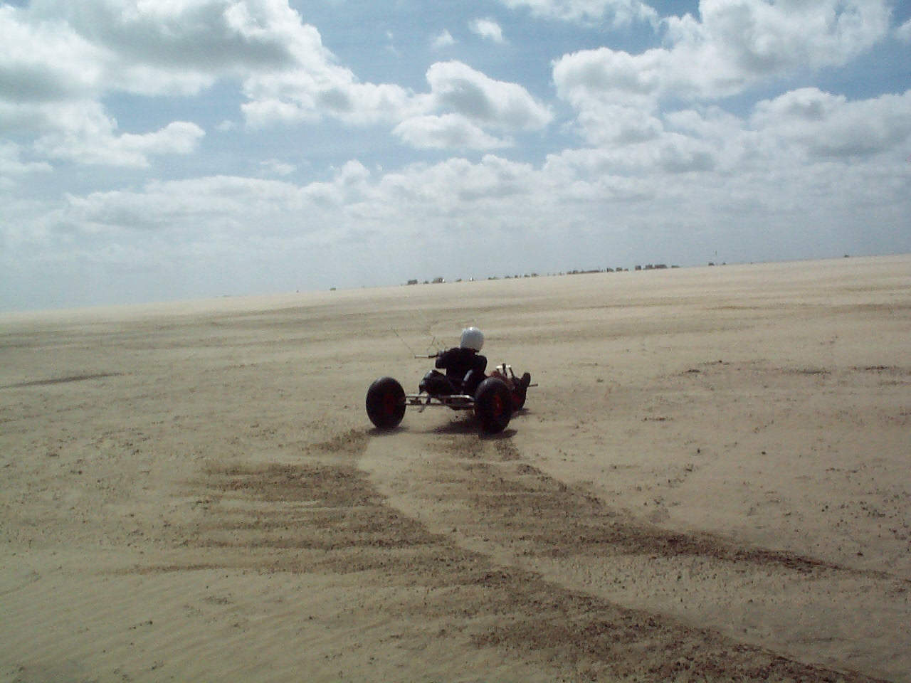 Auf diese Aufnahmen bin ich besonders stolz. Sie wurden von Hossi mit einer Digicam gemacht. Hier sieht man recht gut, daß in dem Sport echt power steckt. Beim Fahren war der Helm unerläßlich. Ich hatte mich bereits an den Tagen vorher breits 3 mal Überschlagen. Dabei ist aber nichts passiert, da der Sand sehr weich war. Vieleicht sollte ich doch einen weniger agressiven Fahrstil an den Tag legen. Aber es macht ja soviel spaß überpowert über den Sand zu rutschen.