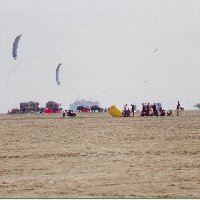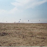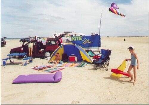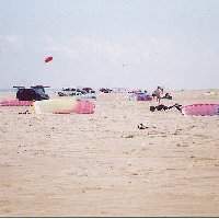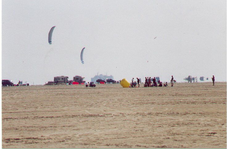 Mal wieder Buggylager am Strand. An der Fahne sieht man, daß der Wind ordentlich bläst.