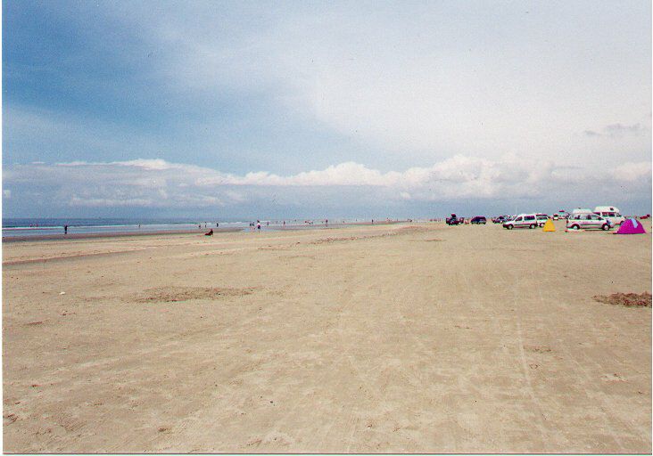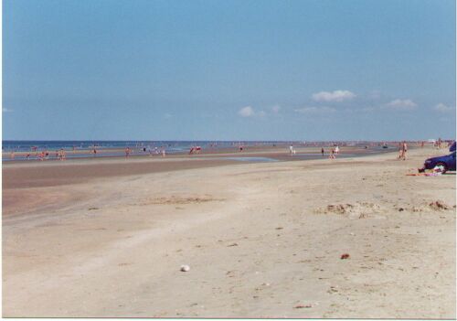 Hier sieht man sehr schön den großen Strand bei Lakolk. Der Strand war an dem Tag relativ leer. An heißen Wochenenden stapeln sich hier die Leute und die Autos stehen in 6 Reihen vor dem Strand. Dann muß man seinen PKW schon mal 200m vor der Wasserkante abstellen.